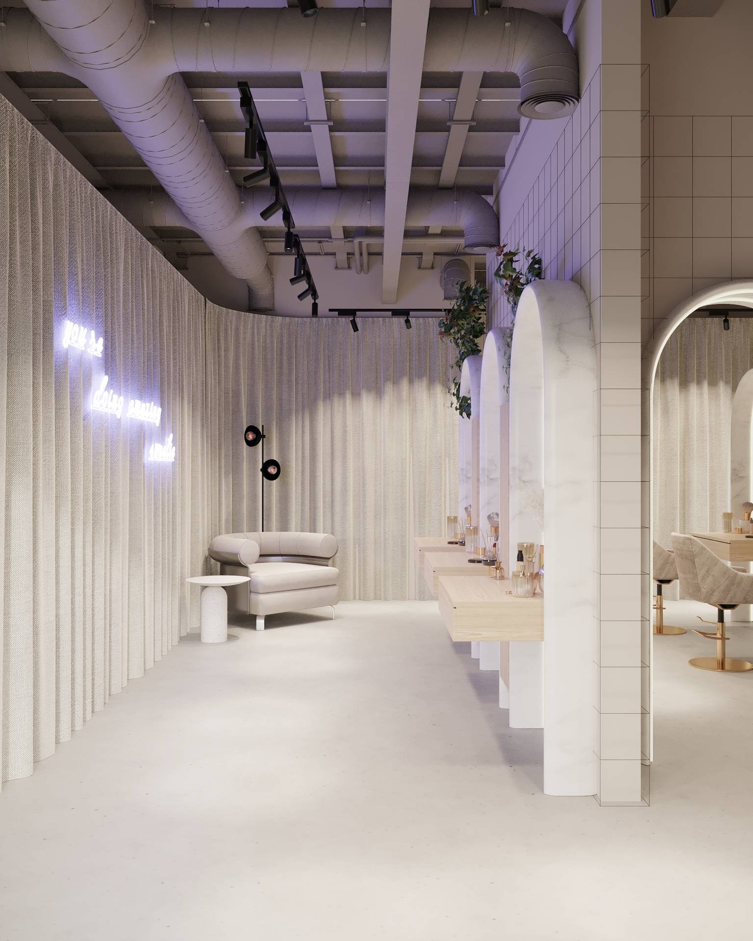 It embraces the principles of minimalism, focusing on simplicity and functionality, while infusing vibrant colours to create an atmosphere that is both visually stimulating and conducive to productivity.